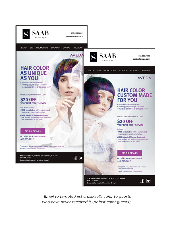 Builds upon Aveda’s national hair color campaign. Concept Benefits eligible.*