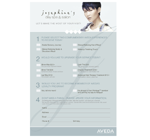Increase service sales by offering add-on services to guests who are already in your door. These multi-purpose pads keep your database up-to-date and hold your team accountable for performing Aveda rituals. Each pad includes 150 sheets.