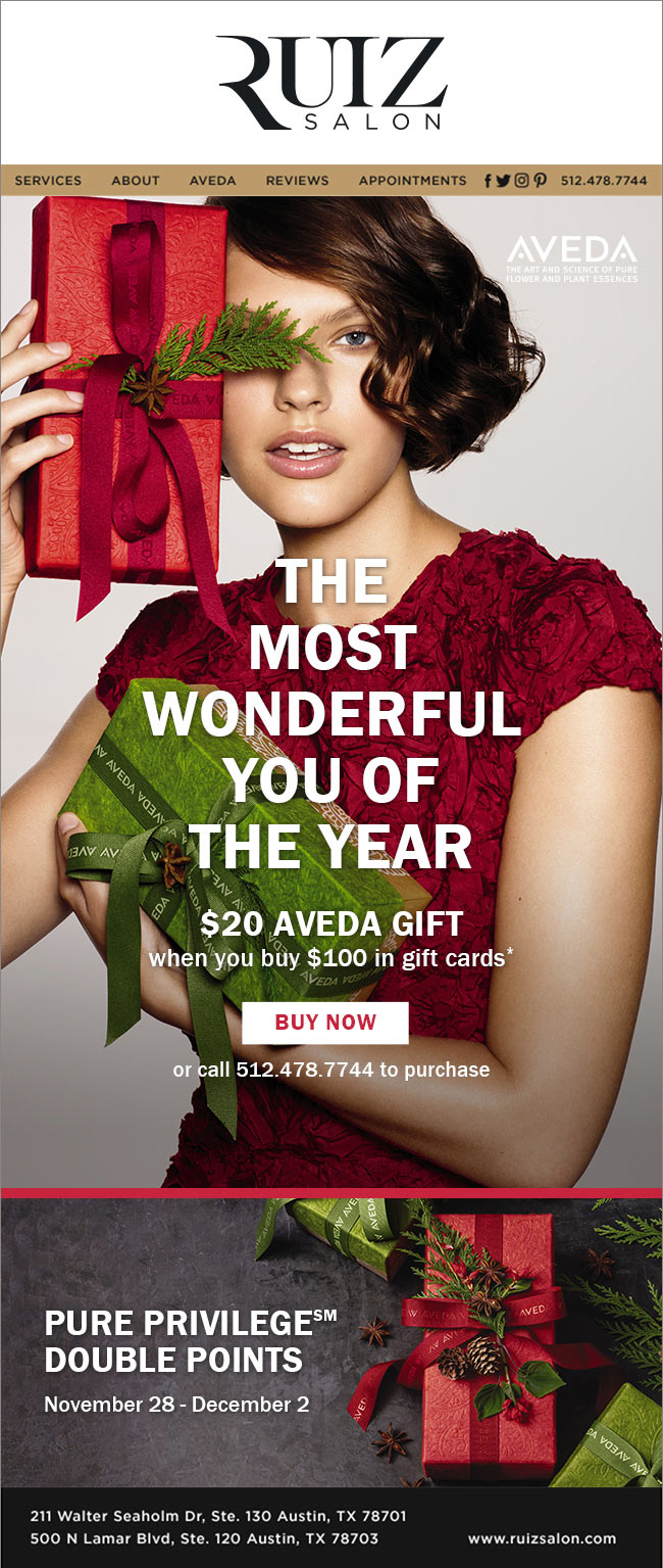 • Promote gift sets, gift cards and spa packages