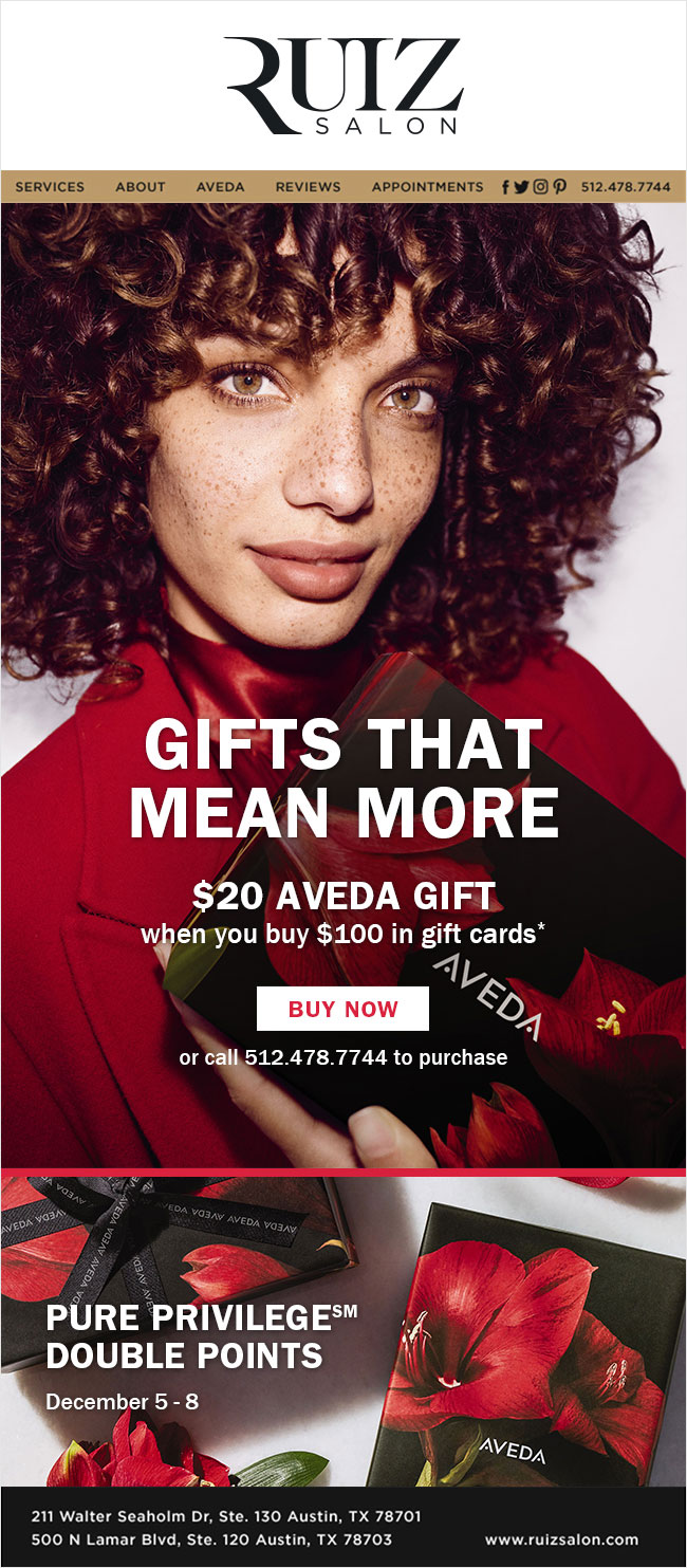 • Include with every gift set to draw new clients into the salon in typically slow January and February